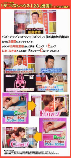 番組中、リアルタイムで効果を出し「バストアップの神様」の称号をいただきました。